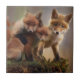 Família bonito do Fox - esta imagem do profissional caracteriza uma família de raposas adoráveis.