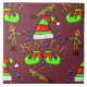 Um grupo de elfos de Natal (Papais noeis Auxiliares) a brincar e a ser malicioso. Eles estão brincando com um chapéu vermelho e verde listrado e calçados verdes e vermelhos pontiagudos. Este lindo azulejo de Natal faria uma decoração de Natal excelente para as crianças este ano.