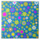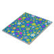Azulejo cerâmico quadrado com imagem de flores brancas, amarelas, roxas, azuis, brancas, laranja e verdes, em azul. Ver caneca, placa de papel e porta copos de plástico quadrada correspondentes. Veja toda a coleção de Azulejos Flores e Plantas na seção HOME.