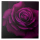 Um azulejo cerâmico com uma imagem aproximada de um rosa magenta roxo com aspecto gótico. Um estilo escuro e misterioso.