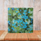Azulejo cerâmico que apresenta uma foto das minúsculas flores azuis e folhas variegadas da planta Brunnera Jack Frost. Um design floral adorável! Selecione o tamanho do seu azulejo. Faz uma trivet de cozinha excelente!