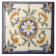 azulejo cerâmico siciliano de verão, padrão pintado à mão italiana,design português de cor laranja mediterrânico,azul-dourado e branco,flores de margarida de verão floral,portugal mínimo minimalista,pintura tradicional clássica autêntica,rústica retro antiquada vintage,arte folk espanhola mexicana talavera,flor amarela da mostarda ouro