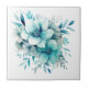 Azulejo de cerâmica floral de turquesa leve que faz parte de uma coleção de cavalos marinhos.