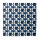 Este design apresenta flores brancas e azuis sobre fundo azul.