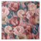 Azulejo cerâmico com óleo de Abstrato pintando flores bege castanho com folhas azuis fundo floral. Bright home decor cerâmica azulejo.