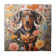 Azulejo De Cerâmica Flores De Dachshund Castanho E Cosmos