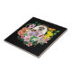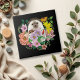Um ouriço bonito sentado entre flores coloridas de verão num pano de fundo preto