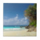 Lindas árvores floridas ao longo da costa.. uma bela praia quente com ondas suaves e areia ouro rolantes.