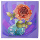 Um azulejo floral brilhante de flores pintadas; cor-de-rosa cheio floresce em um vaso de água, em uma palha traseira de roxo. Acessório perfeito para adicionar uma abertura de cor à sua cozinha (ou a qualquer outra sala da casa!) Use como uma trivit ou uma peça de arte.