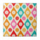 Este é um padrão fofo de flores retrorreflectoras colocado em diamantes geométricos coloridos de harlequin em laranja, rosa, vermelha, lacre e tangerina.