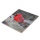 Norte Brilhante As poses de cardeal na floresta, acrescentando um sotaque adorável ao azulejo cerâmico.