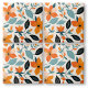 Flores laranja, padrão floral de folhagem verde-azul e escura em azulejos de banho ou cozinha fofos.