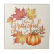 Celebre a beleza do outono com este azulejo cerâmico "Grateful", com uma abóbora rústica cercada por folhas coloridas de outono. Um sotaque sazonal encantador para sua decoração caseira ou um presente sincero para as comemorações de Ação de Graças e colheita.