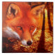 Raposa vermelha na floresta do outono. Árvores e luz solar morna.
