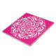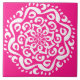Esta mandala branca senta-se sobre um fundo rosa brilhante. A cor é brilhante e alegre. Parte da Coleção Kylgh Mandala. Este design pode não ser impressão tão brilhante quanto aparece on-line.