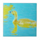 Azulejo De Cerâmica Ganso de bebê amarelo com água azul clara