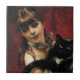 Azulejo De Cerâmica Garota com um gato preto em seus braços