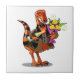 Ilustração de um raptor de desenho animado contendo uma garrafa de vinho espumante e flores.