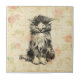 Azulejo De Cerâmica Gato Antiquado de Gatinho Gelado com Design Flor F