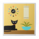 Azulejo De Cerâmica Gato de meio século com Relógio de Bola em Amarelo