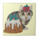 Azulejo De Cerâmica gato malhado cinzento do gatinho bonito que lambe