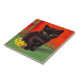 Azulejo com um gato preto no estilo Van Gogh! Este belo gatinho fica adoravelmente ao lado dos girassóis sobre um chão verde contra uma parede vermelha. Um presente bonito para amantes de gatos e colecionadores de arte holandeses!