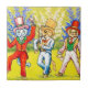 Azulejo com a pintura animal de Louis Wain Três Gatos Executando a Canção e a Dança (1860-1939). Três gatos antropomorfizados vestindo tuxedos e chapéus de topo dançam e cantam com seus lenços e canes. Um presente maravilhoso para amantes de gatos e arte inglesa.