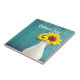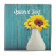 Girassóis plantados sobre uma prancha de madeira rusticada, pintada em azul-de-vidro marinho. Personalize para seu gosto!