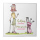 Dama de golfe com "Golfe para sempre, trabalho doméstico sempre que"