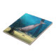 Renderização digital 3D de um golfinho fofo sobre fundo oceânico de fantasia azul
