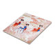 A pintura colorida japonesa da porcelana do vintage com gueixas e o jardim bonito ajardinam incluir flores e pontes. Fotografia.