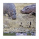 Dois hippos pigmeus descansando e o terceiro tomando e se interessando por dois gansos canadenses.