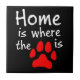 Um jogo de palavras com a citação "Casa é onde está o coração", este azulejo cerâmico tem as palavras "Casa é onde está o [quadro de impressão de pata]", com a pintura impressa em vermelho, representando o "coração". O presente perfeito para amantes de estimação.