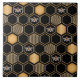 Este design contemporâneo apresenta um padrão geométrico de coloração dourada das colmeias, mamangabas e um fundo preto.