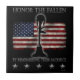 Em honra de nossos membros caídos dos serviços com armas. Os soldados cruzam-se com a bandeira americana no fundo. As cinco estrelas representam os cinco ramos das forças armadas dos E.U.