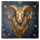 A mystical golden Ram Aries Astrology sign tile with a blue and gold starry background.