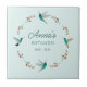 Esse bonito azulejo cerâmico personalizável apresenta uma camada aquosa de beija-flores e galhos botânicos sobre fundo azul-claro. O tamanho da fonte e o estilo da fonte podem ser alterados clicando em "Editar usando a ferramenta design". Todas as imagens de beija-flores são tiradas das aquarelas originais por C. Dobbins.