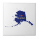 Uma silhueta azul, ou mapa, do estado do Alasca com o slogan "I Heart (Love) Alaska." Venha visitar A Terra Excelente.