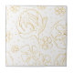 O azulejo cerâmico com folha de ouro Abstrato contém flores. Padrão floral ventiço. Silhuetas de flores em fundo branco. Azulejo de cerâmica floral de estilo mínimo. Coleção Icy Tenderness.
