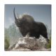 Um rinoceronte woolly está sobre algumas rochas cobertos de neve em uma cena invernal da idade do gelo. Pele escura o animal coberto é uma criatura maciça com um chifre curvado excelente e uma construção forte. Com respiração húmido o rinoceronte poderoso examina a terra em torno dele. Atrás dele uma floresta das coníferas desvanece-se na distância. A terra é coberta com a neve, mas algumas lâminas de grama marrons e de ervas daninhas picam completamente assim como o pinheiro curto ocasional da ocupa.