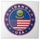 Crachá de Idaho com bandeira de Idaho e bandeira de cores dos EUA, forma arredondada. Emblema de Idaho. Selo de Idaho. Coleção dos Estados Unidos.