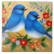 Azulejo De Cerâmica Ilustração Colorida de Duas Aves Azuis