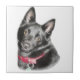 Azulejo trivet com foto de cão Pet Schipperke. Conhecido como "pequeno capitão" ou "pequeno capitão", um cão muito ativo, adora estar envolvido e brincar. Curioso e atento, você não pode deixar de se apaixonar por esta cara de "pequeno demônio negro".