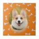 Azulejos cerâmicos personalizados e bonitos com padrão ósseo. Versão de quadro laranja. Adicionar imagem para personalizar. Ideia de presente para amantes de cães.