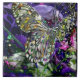 Uma bela ascensão de borboleta à lua, há um pequeno gato à esquerda assistindo. Arte digital original. azulejo cerâmico.