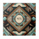 Belo padrão ocidental, turquesa, preto, castanho e creme. Personalize com as iniciais do monograma.