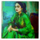 Um retrato gerado pela IA de uma mulher introspectiva em um vestido verde