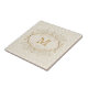 Bonito damasco de marfim com elegante azulejo cerâmico de pérolas de ouro monograma. Você pode personalizar facilmente este belo azulejo cerâmico bege com sua escolha de texto no estilo de fonte e cor de sua escolha.
