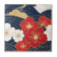 This ceramic tile features a vibrant design inspired by traditional Japanese art, blending deep navy waves, delicate cherry blossoms in red and pink, and subtle golden accents. Perfect for adding a touch of ethnic elegance to any space, this bohemian-style tile works beautifully as part of a backsplash, accent wall, or decorative mural in kitchens, bathrooms, or living areas. This is Tile 1 of 8 in the "Japanese Waves and Blossoms" collection, designed to create a stunning cohesive mural when assembled with the full set.