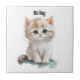 Azulejo De Cerâmica Kitten Adorable com Aquarela com Olhos Azuis